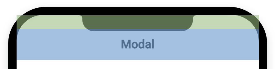To accommodate this, Ionic automatically adds padding to certain components. For example, the first ion-toolbar component placed in an ion-modal will receive padding according to the top edge of the device's safe area. This avoids the device's notch covering up the header text.